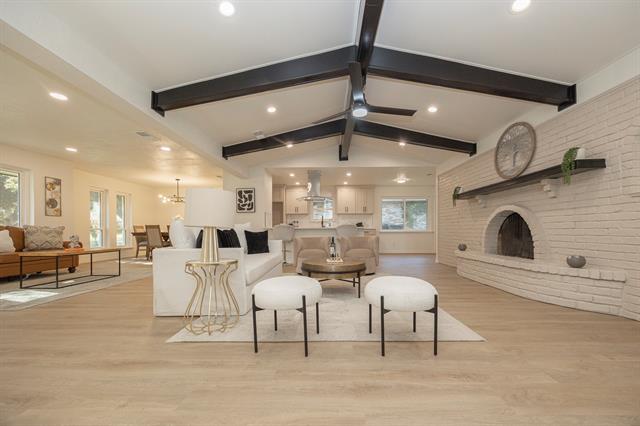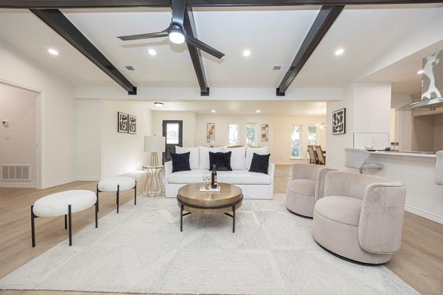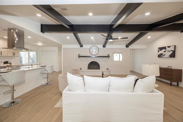 *** Fully Renovated 4-Bed Plano Home *** No HOA *** Paid-Off Solar *** Move-In Ready *** Welcome to this fully renovated 4-bedroom, 3-bath residence offering 2,344 sq ft of beautifully curated living space in the heart of Plano. Designed to blend timeless architectural character with modern luxury, this home is truly move-in ready and located in an established neighborhood with no HOA. The grand living room is a showstopper, highlighted by a dramatic wood-beamed vaulted ceiling and a stunning brick fireplace, creating a warm yet sophisticated focal point. Abundant natural light enhances the open layout, which flows seamlessly into the dining area and the chef-inspired kitchen featuring custom cabinetry, quartz countertops, stainless-steel appliances, designer backsplash, and upgraded fixtures—perfect for both entertaining and everyday living. All three bathrooms have been completely renovated with elegant designer finishes, modern vanities, tubs and showers. Luxury vinyl plank flooring, fresh interior and exterior paint, and stylish updated lighting elevate the home’s cohesive, contemporary aesthetic. Major upgrades provide long-term peace of mind, including updated plumbing, a fully replaced roof, and foundation repairs with transferable warranty. The home also features paid-off solar panels, offering immediate energy efficiency and reduced utility costs. Enjoy outdoor living with fresh landscaping and a spacious yard, all within highly rated Plano ISD. Conveniently located near parks, premier shopping, dining, and with quick access to US-75, George Bush Turnpike, and Dallas North Tollway, this home offers effortless connectivity across the DFW metroplex. A rare opportunity to own a fully renovated, architecturally distinctive home in one of Plano’s most desirable locations.