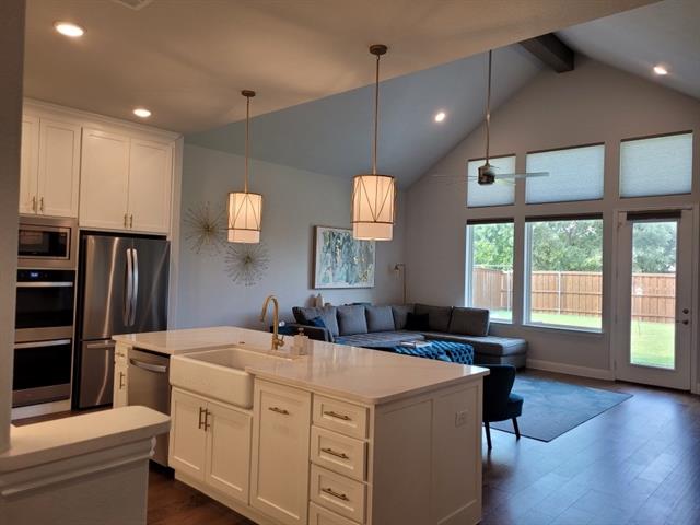 Stunning Modern Home with Luxury Upgrades & Green Space Views Drees home built in 2023 and packed with premium features. This spacious and elegant residence offers the perfect blend of comfort, functionality, and modern style. Conveniently located near the George Bush Tollway, you’ll enjoy easy access to shopping, dining, and major commute routes. Choice of schools within district. Key Features: Dedicated Office – Perfect for remote work or a quiet study. Large Main Bedroom Suite – Includes a spa-like bathroom and an expansive walk-in closet. Chef’s Kitchen – Featuring double convection ovens, large walk-in pantry, and under cabinet lighting Loft Game Room – Prewired for surround sound. Ideal for entertaining or a secondary living space. Vaulted Ceilings – Add grandeur and openness to the living area. Gas Fireplace – A cozy focal point in the living room. Hardwood Floors – Throughout the main living spaces for a clean, modern look. Custom Energy-Efficient Blinds – Installed throughout the home for style and energy savings. Large Laundry Room – Provides additional storage and workspace. Tankless Water Heater – Delivers energy-efficient, on-demand hot water. EV Charger Plug – Future-ready for electric vehicle owners. 3-Car Tandem Garage – Extra room for storage, hobbies, or additional vehicles. Spacious Backyard – Backs up to a serene green space for added privacy. Has gas line ready for your grill or generator. Two Large Covered Patios – Perfect for outdoor dining and entertaining. This home combines contemporary elegance with practical upgrades in a prime location. Don’t miss your chance to make it yours—schedule a private showing today!