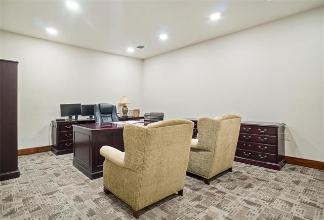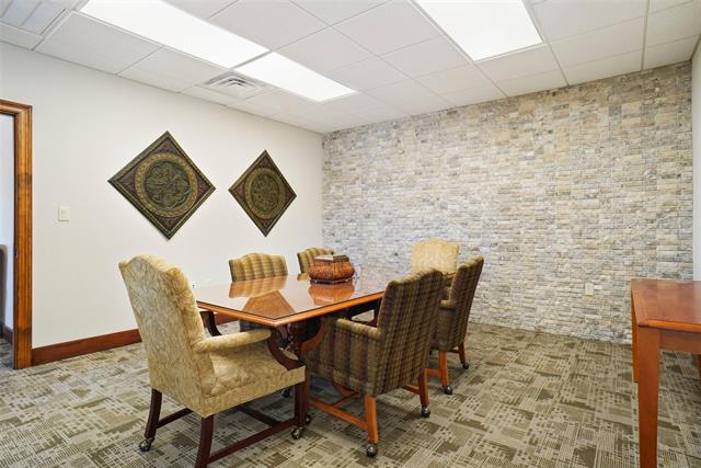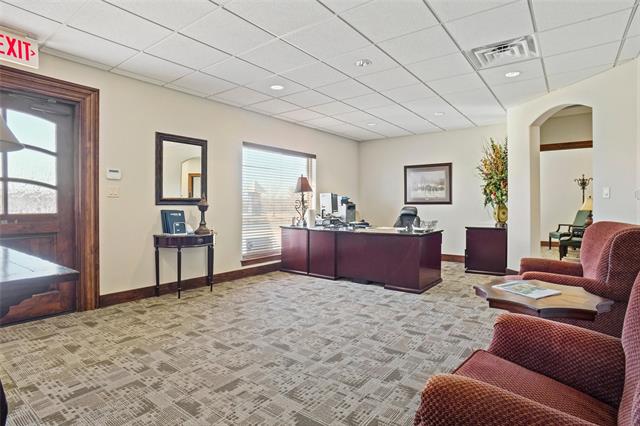 Beautiful office building in great location off 380 W. Suite 101-Nice entry receptionist area with 4 private offices, wood blinds, workroom with plenty of storage and workspace. Kitchen-break room area with granite counter tops, dishwasher, farm sink, plenty of cabinets, luxury vinyl flooring, covered fenced sitting area outside. Kitchen-break room area is used by both suites. Suite 102-Nice entry receptionist area with 5 private offices, wood blinds, workroom with plenty of storage and workspace, and conference room. Perfect opportunity for a luxurious office and your own adjoining lease space.